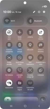 Desliza el dedo hacia abajo desde la esquina superior derecha de la pantalla para utilizar Galaxy AI para traducir una conversación.