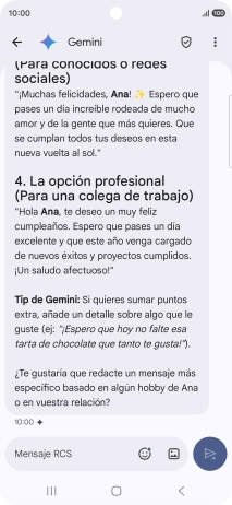 La propuesta de texto de Gemini se visualiza ahora en la pantalla.
