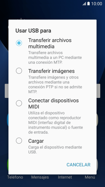 Conecta el cable de datos al conector del teléfono y al puerto USB del ordenador.