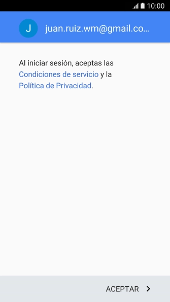 Pulsa ACEPTAR y sigue las indicaciones de la pantalla para seleccionar los ajustes de tu cuenta de Google.