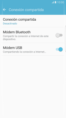 Pulsa el indicador junto a "Módem USB" para activar la función. Se establece ahora de forma automática una conexión con Internet desde el ordenador a través del teléfono.
