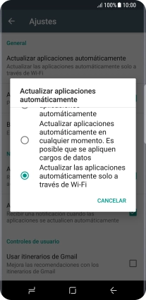 Pulsa Actualizar las aplicaciones automáticamente solo a través de Wi-Fi para activar la función.