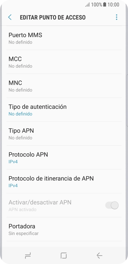 Pulsa en el campo junto a la conexión de datos para activarla.