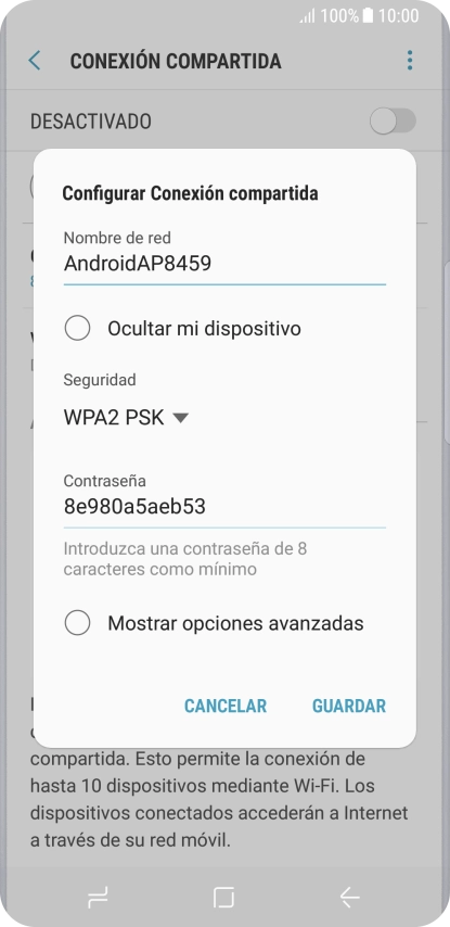 Pulsa WPA2 PSK para proteger la conexión wifi con una contraseña.