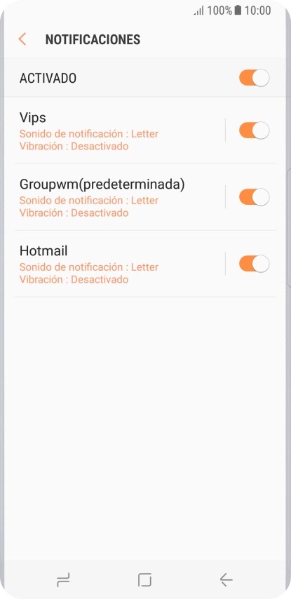 Pulsa el indicador junto a la cuenta de correo electrónico deseada para activar o desactivar la función.