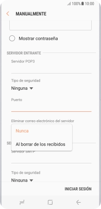 Pulsa Nunca para conservar los correos electrónicos en el servidor cuando los borras del teléfono.
