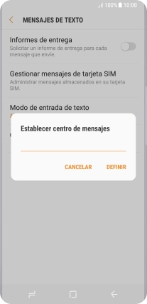 2. Introduce el número del centro servidor de mensajes cortos