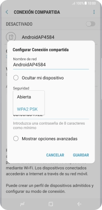 Pulsa WPA2 PSK para proteger la conexión wifi con una contraseña.