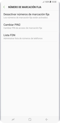 Pulsa Desactivar números de marcación fija para desactivar la marcación fija.