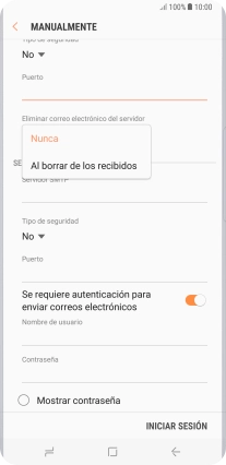 Pulsa Nunca para conservar los correos electrónicos en el servidor cuando los borras del teléfono.