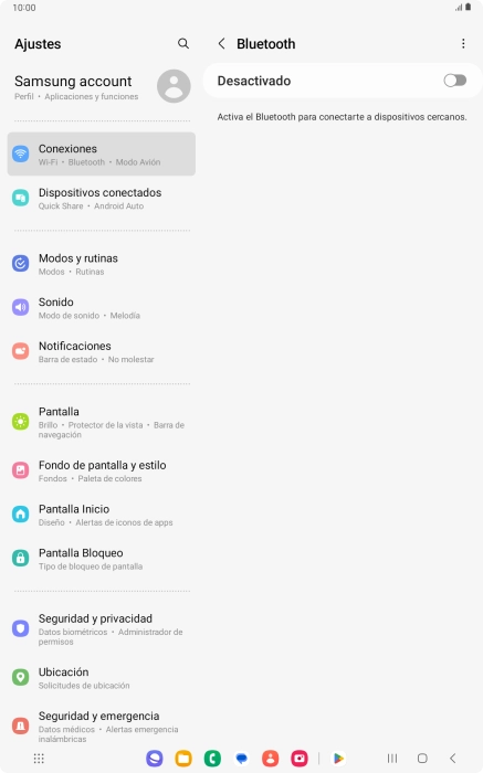 Si activas el Bluetooth, la tablet será visible para todos los dispositivos Bluetooth.