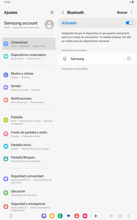Pulsa el dispositivo Bluetooth deseado y sigue las indicaciones de la pantalla para vincular el dispositivo a la tablet.