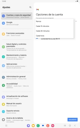 14. Selecciona el ajuste para la descarga de nuevos correos electrónicos