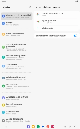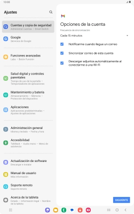 Pulsa en el campo junto a "Sincronizar correo de esta cuenta" para activar la función.