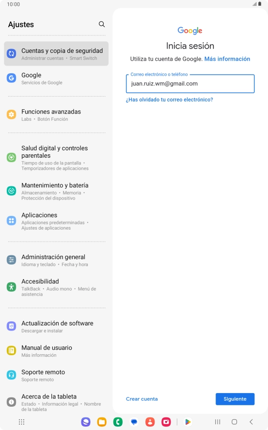 Activa tu cuenta de Google en la Samsung Galaxy Tab A8 Android 13