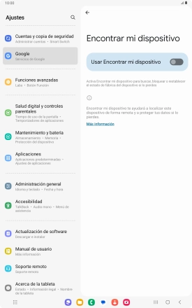 Selecciona los ajustes de "Encontrar mi dispositivo" en la Samsung Galaxy Tab A8 Android 13