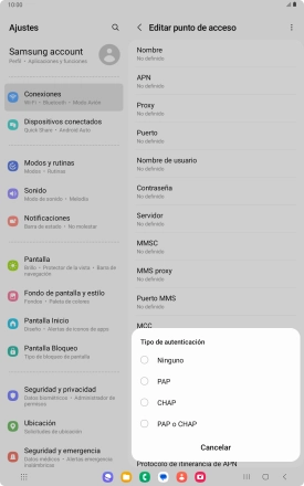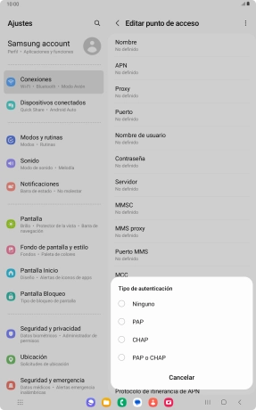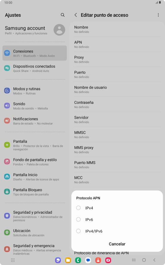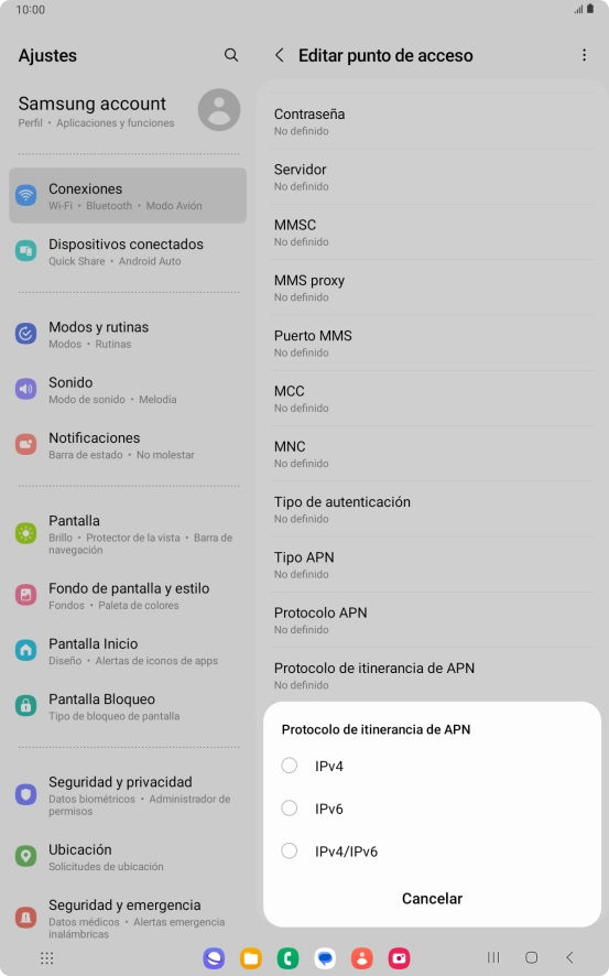 9 Selecciona el protocolo del punto de acceso (APN) en roaming