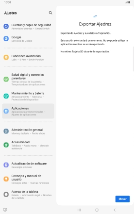 Puedes mover tus apps a una tarjeta de memoria externa para liberar espacio en la memoria interna de la tablet. Para hacerlo, tienes que insertar una tarjeta de memoria externa en la tablet.