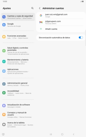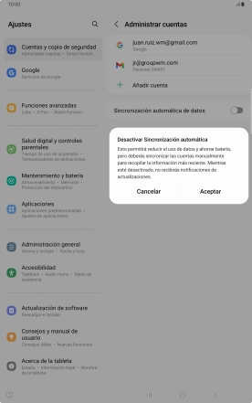 Activa o desactiva la sincronización automática de contenido en la Samsung Galaxy Tab S9 5G Android 13