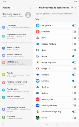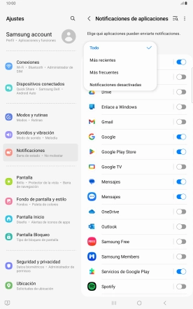 Activa o desactiva las notificaciones en la Samsung Galaxy Tab S9 5G Android 13
