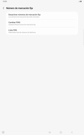 Cuando la marcación fija está activada, la tablet solo puede llamar a determinados números y realizar llamadas de emergencia. Las llamadas entrantes se siguen recibiendo aunque la marcación fija esté activada.