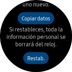 Pulsa Restab.. Espera unos instantes mientras el smartwatch restablece la configuración predeterminada. Sigue las indicaciones de la pantalla para configurar el smartwatch y dejarlo listo para su uso.