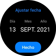 La fecha y la hora se ajustan de forma automática desde el teléfono, pero también tienes la alternativa de configurarlas manualmente, por ejemplo, cuando el smartwatch no está conectado al teléfono.