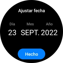 La fecha y la hora se ajustan de forma automática desde el teléfono, pero también tienes la alternativa de configurarlas manualmente, por ejemplo, cuando el smartwatch no está conectado al teléfono.