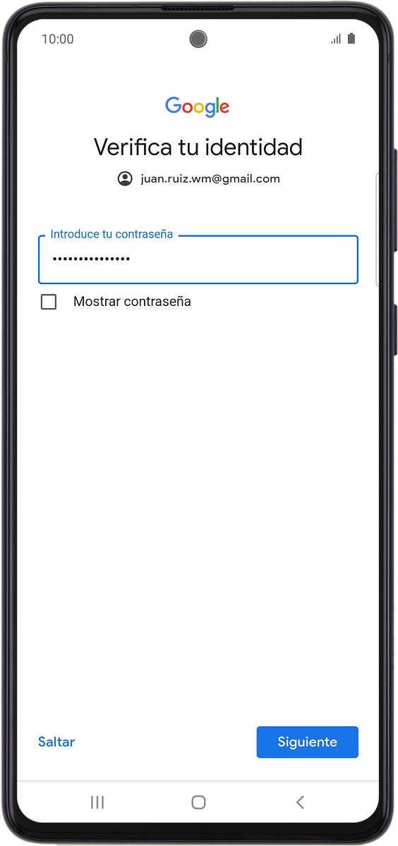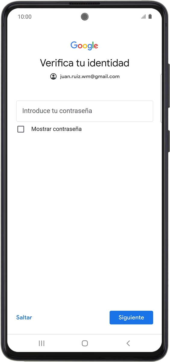 En el teléfono: Introduce la contraseña de tu cuenta de Google y pulsa Siguiente.