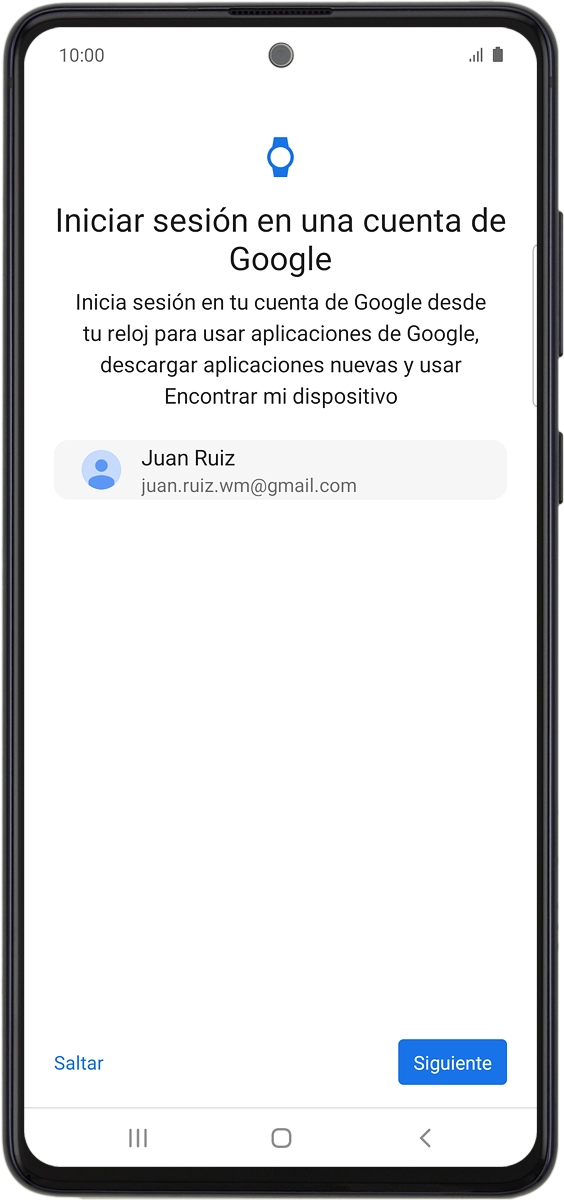 En el teléfono: Si prefieres configurar los datos móviles en el smartwatch más tarde, pulsa Omitir.
