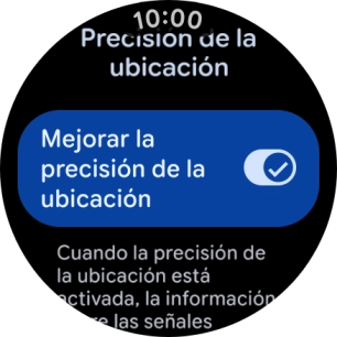 Si pulsas el indicador junto a "Mejorar la precisión de la ubicación" para activar la función, el smartwatch podrá encontrar tu posición exacta con ayuda de los satélites GPS, la red móvil y una red wifi cercana. El GPS por satélite requiere vista libre al cielo.