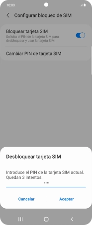 Pulsa el indicador junto a "Bloquear tarjeta SIM" para activar o desactivar la función.