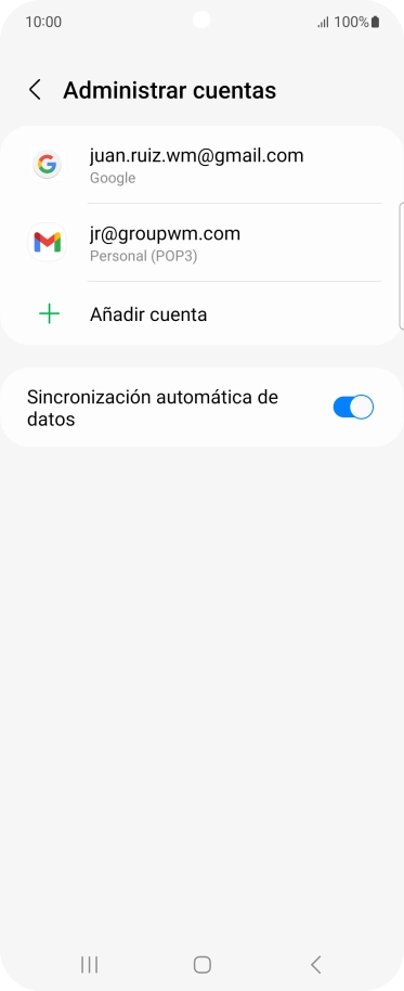 Pulsa en el campo junto a "Sincronizar correo de esta cuenta" para activar la función.