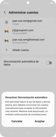 Pulsa el indicador junto a "Sincronización automática de datos" para activar o desactivar la función.