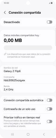 Pulsa el indicador bajo "Conexión compartida" para activar la función.