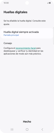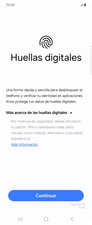 Sigue las indicaciones de la pantalla para crear una huella digital como código de seguridad.