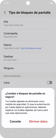 Pulsa Tipo de bloqueo de pantalla e introduce el código de seguridad extra que has creado anteriormente.