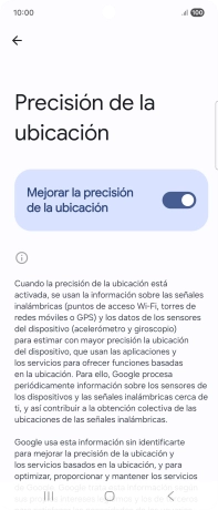 Si pulsas el indicador junto a "Mejorar la precisión de la ubicación" para activar la función, el teléfono podrá encontrar tu posición exacta con ayuda de los satélites GPS, la red móvil y una red wifi cercana. El GPS por satélite requiere vista libre al cielo.