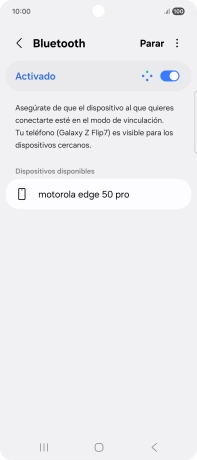 Pulsa el dispositivo Bluetooth deseado y sigue las indicaciones de la pantalla para vincular el dispositivo al teléfono.