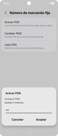 Introduce el código PIN2 y pulsa Aceptar.