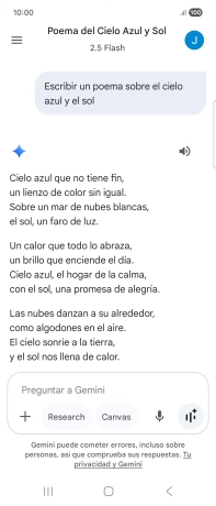Sigue las indicaciones de la pantalla para escribir o decir en alto la pregunta deseada. Puedes adjuntar fotografías o documentos y hacer preguntas acerca de ellos.