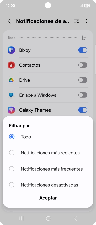 Pulsa el indicador junto a las apps deseadas para activar o desactivar la función.