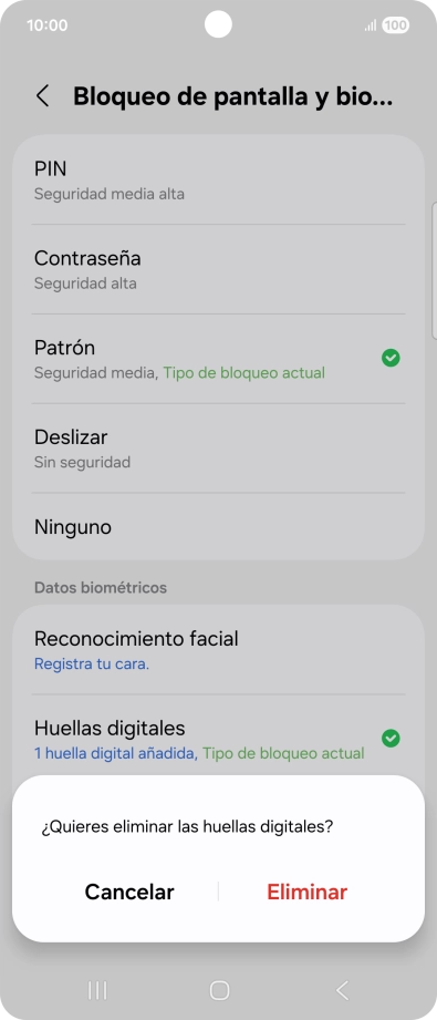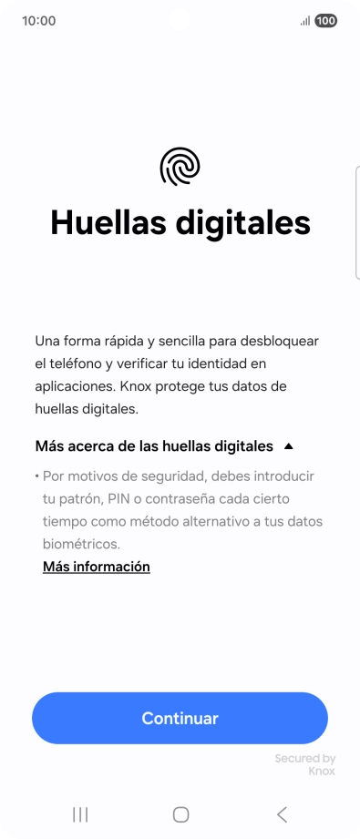Sigue las indicaciones de la pantalla para crear una huella digital como código de seguridad.