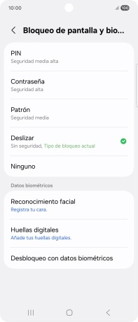 Pulsa Bloqueo de pantalla y biometría e introduce el código de seguridad extra que has creado anteriormente.