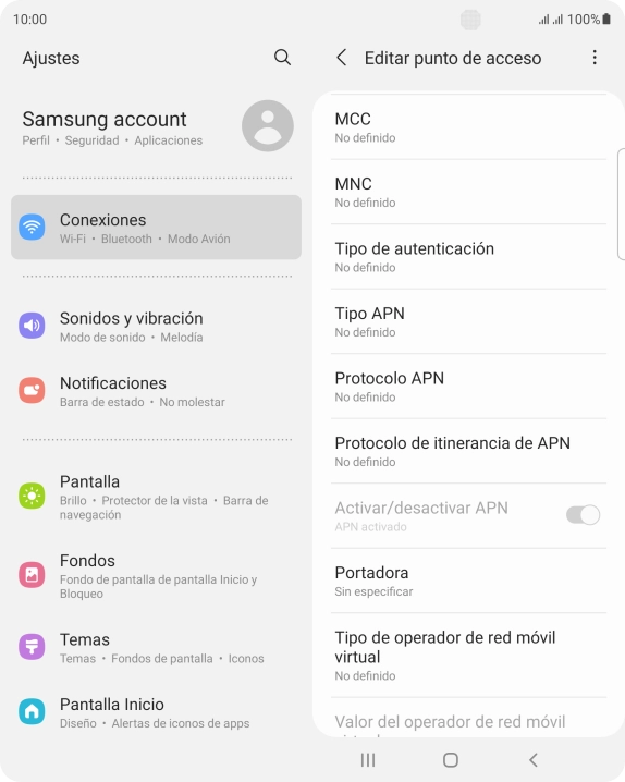 Configura el APN del Samsung Galaxy Z Fold3 5G Android 11.0 para Internet.