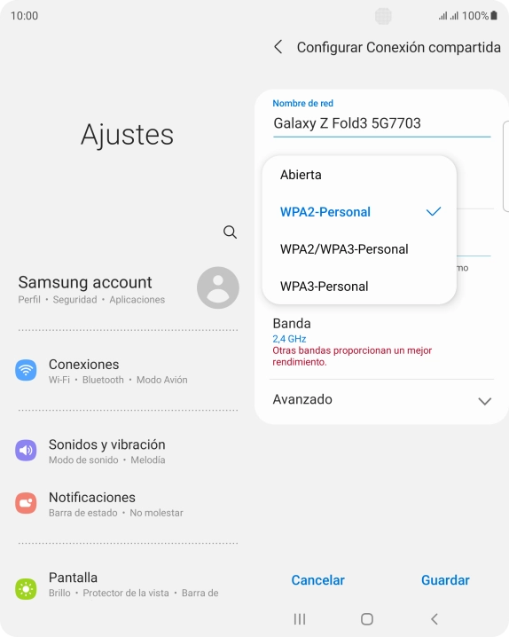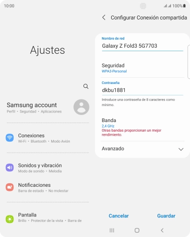 Pulsa WPA3-Personal para proteger la conexión wifi con una contraseña.