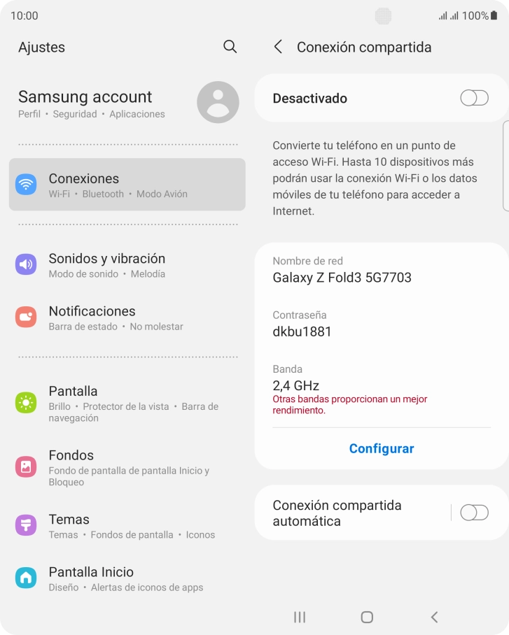 Pulsa el indicador bajo "Conexión compartida" para activar la función.