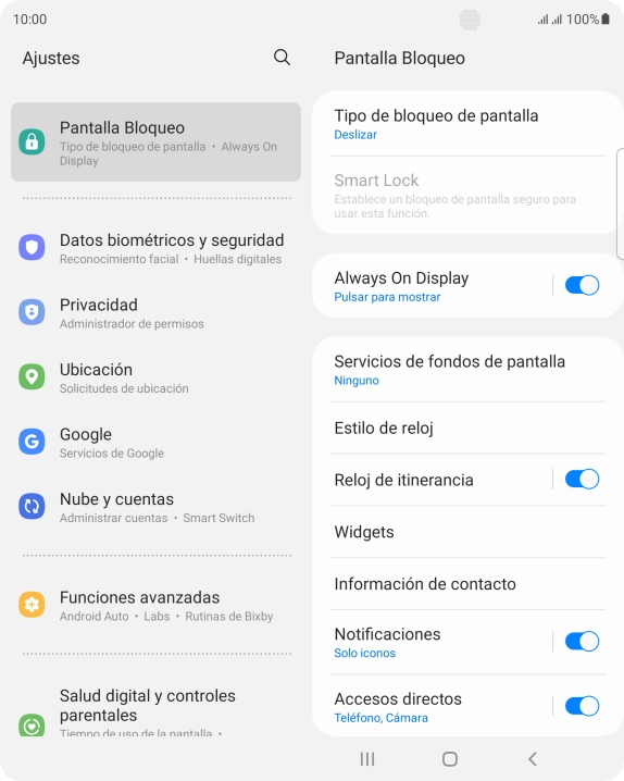 Activa o desactiva el uso del código de seguridad del Samsung Galaxy Z Fold3 5G Android 11.0