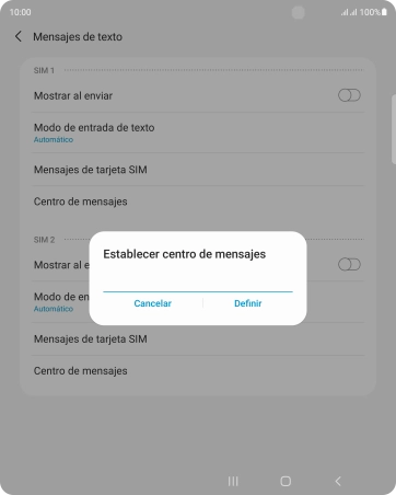 Pulsa Centro de mensajes bajo la tarjeta SIM deseada.