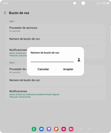 Pulsa Número de buzón de voz bajo la tarjeta SIM deseada.